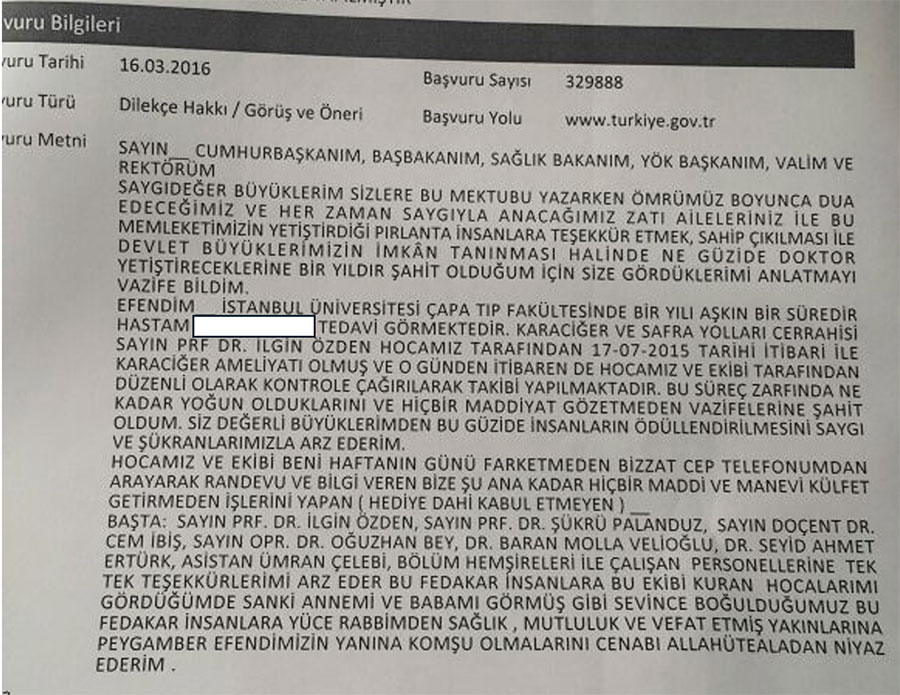 23 Nisan kutlaması – Annesinden acil karaciğer nakli yaptığımız hastadanBebekken acil karaciğer nakli yaptığımız hastamız ilkokuldaBebekken karaciğer nakli yaptığımız hasta – ilkokulda ilk gün CİMER kanalıyla hasta teşekkürü Fedakâr hemşire ve doktor Hastanın çocuğundan: “Annemi iyileştirdin ve beni doğurdu” Kanada’da yaşayan ve ikinci görüş isteyen hasta – 2025 Karaciğer hemanjiyomu olan, hamileliği zor geçtiği için danışmaya gelen hastamızın kızı Karaciğer kanseri sebebiyle tedavi ettiğimiz tıp öğrencisinden Mantar zehirlenmesine bağlı komadan, karaciğer nakli ile kurtulan hasta Nakil yaptığımız bebeğin babasından Şant hastasındanHastadan: "Beni Türk Hekimlerine Emanet Edin."
