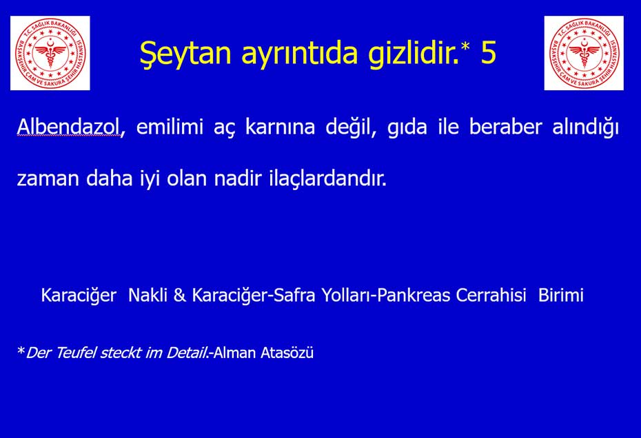 Albendazol, emilimi aç karnına değil, gıda ile beraber alındığı zaman daha iyi olan nadir ilaçlardandır.