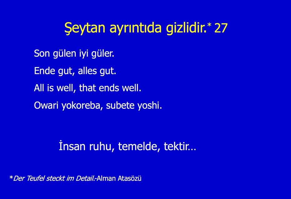Son gülen iyi güler. Ende gut, alles gut. All is well, that ends well. Owari yokoreba, subete yoshi.