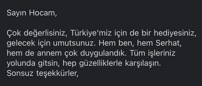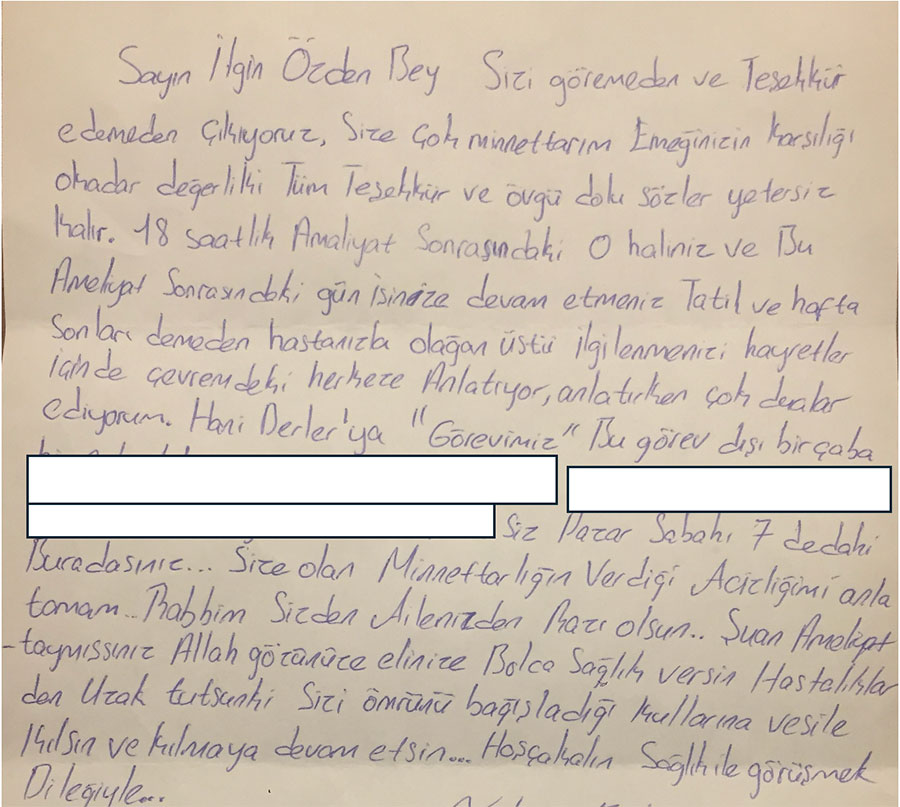 23 Nisan kutlaması – Annesinden acil karaciğer nakli yaptığımız hastadanBebekken acil karaciğer nakli yaptığımız hastamız ilkokuldaBebekken karaciğer nakli yaptığımız hasta – ilkokulda ilk gün CİMER kanalıyla hasta teşekkürü Fedakâr hemşire ve doktor Hastanın çocuğundan: “Annemi iyileştirdin ve beni doğurdu” Kanada’da yaşayan ve ikinci görüş isteyen hasta – 2025 Karaciğer hemanjiyomu olan, hamileliği zor geçtiği için danışmaya gelen hastamızın kızı Karaciğer kanseri sebebiyle tedavi ettiğimiz tıp öğrencisinden Mantar zehirlenmesine bağlı komadan, karaciğer nakli ile kurtulan hasta Nakil yaptığımız bebeğin babasından Şant hastasındanHastadan: "Beni Türk Hekimlerine Emanet Edin."