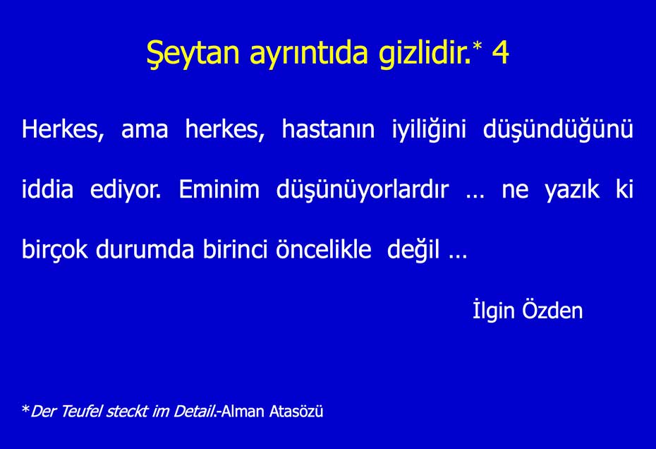 Herkes, ama herkes, hastanın iyiliğini düşündüğünü iddia ediyor. Eminim düşünüyorlardır ... ne yazık ki birçok durumda birinci öncelikle değil ...