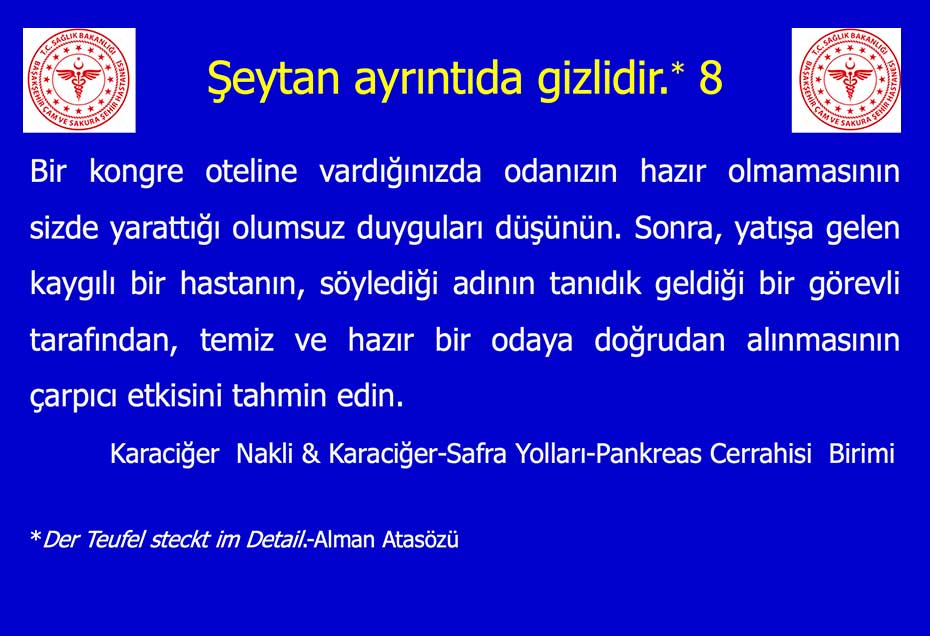 Bir kongre oteline vardığınızda odanızın hazır olmamasının sizde yarattığı olumsuz duyguları düşünün. Sonra, yatışa gelen kaygılı bir hastanın, söylediği adının tanıdık geldiği bir görevli tarafından, temiz ve hazır bir odaya doğrudan alınmasının çarpıcı etkisini tahmin edin.