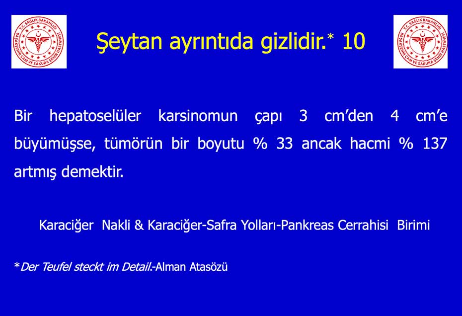 Bir hepatoselüler karsinomun çapı 3 cm’den 4 cm’e büyümüşse, tümörün bir boyutu % 33 ancak hacmi % 137 artmış demektir.