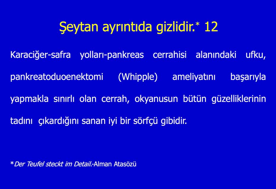 Karaciğer-safra yolları-pankreas cerrahisi alanındaki ufku, pankreatoduonektomi (Whipple) ameliyatını başarıyla yapmakla sınırlı olan cerrah, okyanusun bütün güzelliklerinin tadını çıkardığını sanan iyi bir sörfçü gibidir.