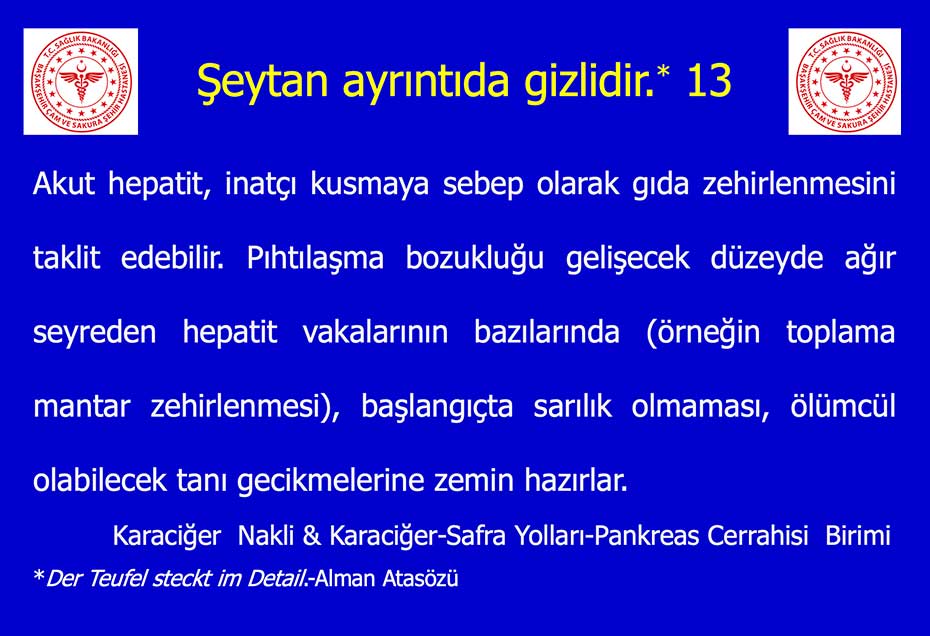 Akut hepatit, inatçı kusmaya sebep olarak gıda zehirlenmesini taklit edebilir. Pıhtılaşma bozukluğu gelişecek düzeyde ağır seyreden hepatit vakalarının bazılarında (örneğin toplama mantar zehirlenmesi), başlangıçta sarılık olmaması, ölümcül olabilecek tanı gecikmelerine zemin hazırlar.