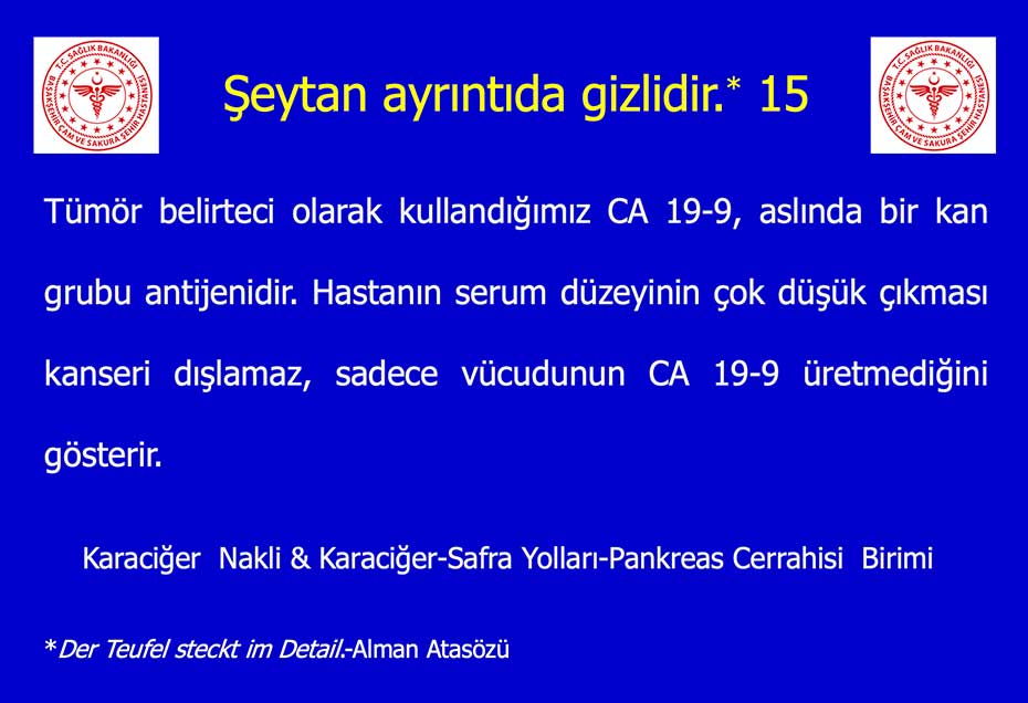 Tümör belirteci olarak kullandığımız CA 19-9, aslında bir kan grubu antijenidir. Hastanın serum düzeyinin çok düşük çıkması kanseri dışlamaz, sadece vücudunun CA 19-9 üretmediğini gösterir.