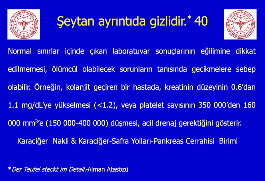 Normal sınırlar içinde çıkan laboratuvar sonuçlarının eğilimine dikkat edilmemesi, ölümcül olabilecek sorunların tanısında gecikmelere sebep olabilir. Örneğin, kolanjit geçiren bir hastada, kreatinin düzeyinin 0.6’dan 1.1 mg/dL’ye yükselmesi (<1.2), veya platelet sayısının 350 000’den 160 000 mm³’e (150 000-400 000) düşmesi, acil drenaj gerektiğini gösterir.