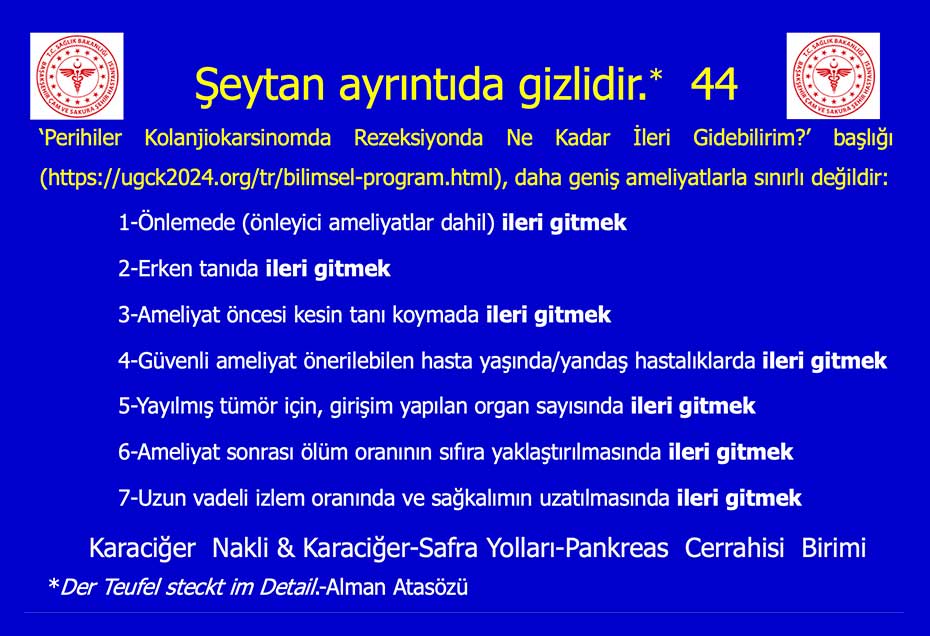 ‘Perihiler Kolanjiokarsinomda Rezeksiyonda Ne Kadar İleri Gidebilirim?’ başlığı (https://ugck2024.org/tr/bilimsel-program.html), daha geniş ameliyatlarla sınırlı değildir: