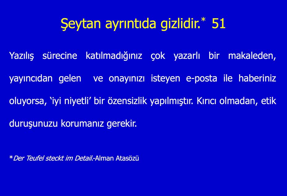 Yazılış sürecine katılmadığınız çok yazarlı bir makaleden, yayıncıdan gelen ve onayınızı isteyen e-posta ile haberiniz oluyorsa, ‘iyi niyetli’ bir özensizlik yapılmıştır. Kırıcı olmadan, etik duruşunuzu korumanız gerekir.